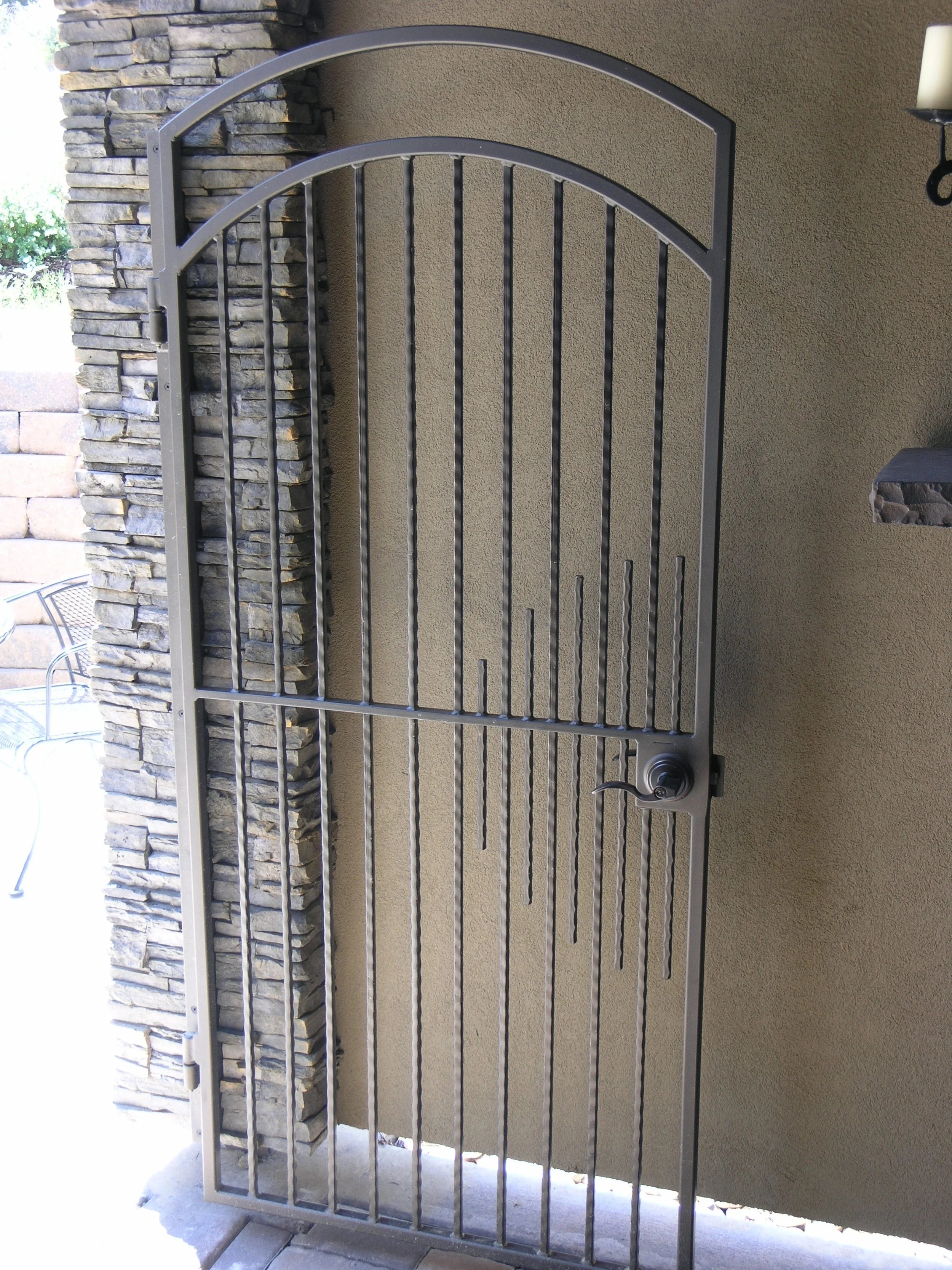 Because we build our gates for each customer, we can meet your needs for design, width, height, swing direction, and we have many latch, lock and hinge options to choose from. Our wrought iron gates add beauty and value as well as create a safe and secure area.